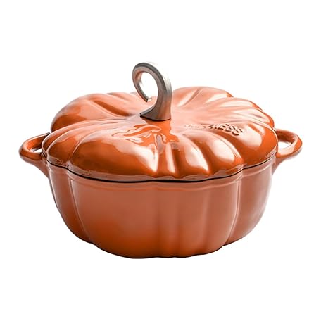 • DECAKE Pumpkin Shape Cooking Pot Casserole with Lid and Handles, Cast Iron Dutch Oven, Non-Stick Stew Pot Soup Pot Halloween Cooking Pot Enamel Cookware Crock Pot for Soup Porridge Stew Gift 3.7L
