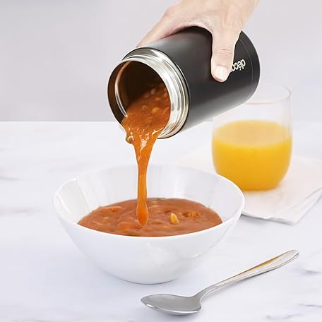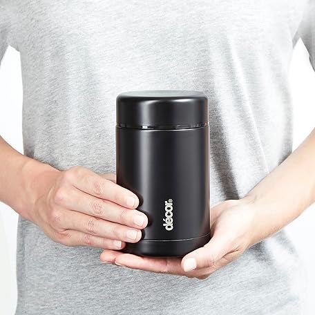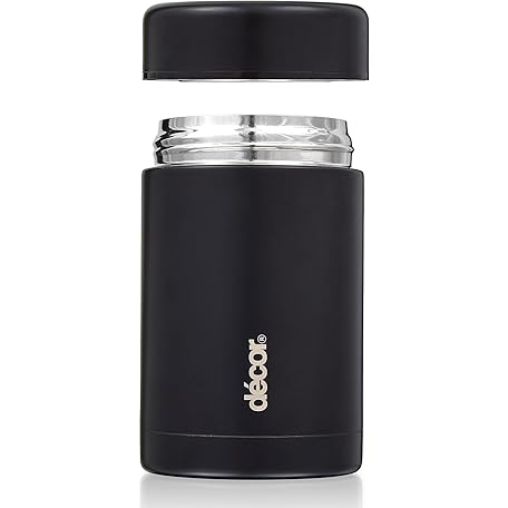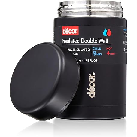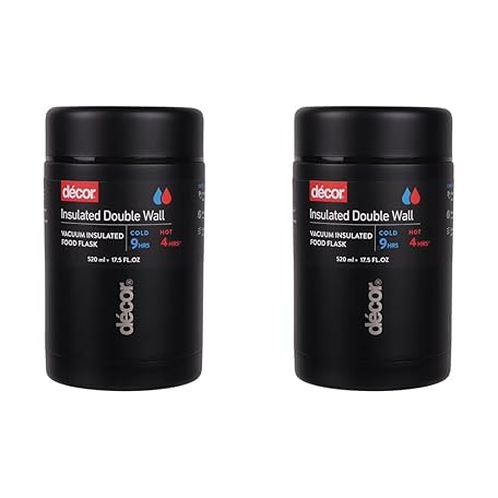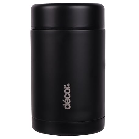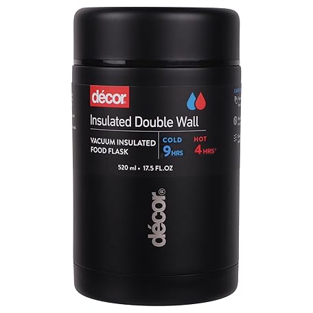 Décor Vacuum Insulated Food Flask, Stainless Steel Insulated Food Flask, Ideal To Carry Lunch, Coffee, Porridge, Curry, Soups, Leak-Proof, BPA-Free, Reusable, Keeps Food Hot & Cold, Black, 520ml