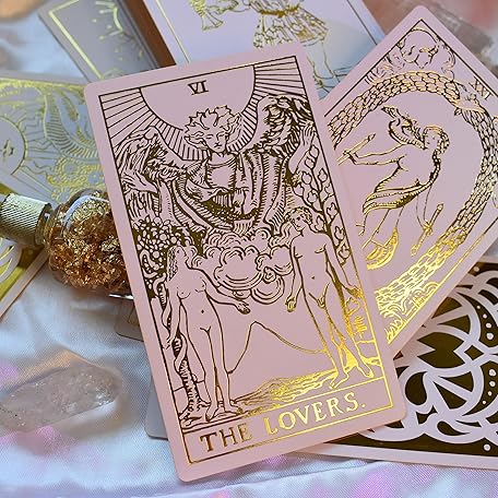 Thông tin sản phẩm DELALUNA ANSWERS All Gold Tarot: 80 Cards Bonus Psychic Deck for Divination, 1909 Original Rider Waite Smith Fortune Telling, Angel Affirmation Set with Meanings on Them for Women and Beginners