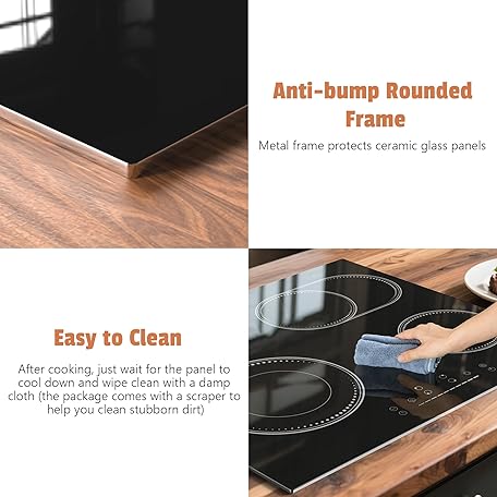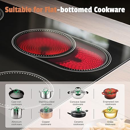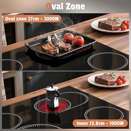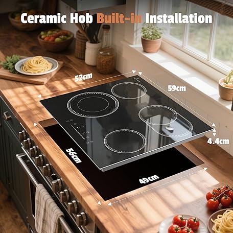 Thông tin sản phẩm DELITEER Electric Hob 60cm, 4 Zone Ceramic Hob 6600W, Built-in 60cm Electric Ceramic Hob with Oval Zond and Double-ring burner, 99 Mins Timer, No Plug
