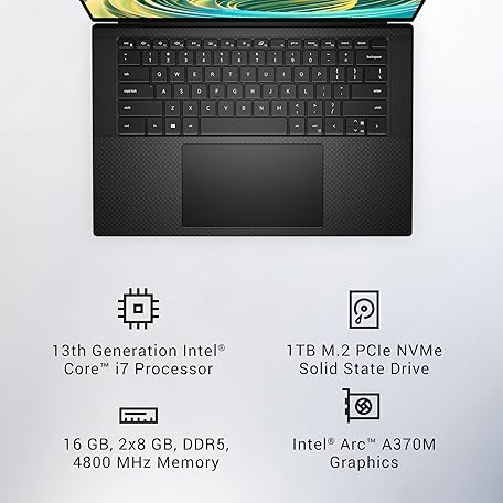 Thông tin sản phẩm Dell XPS 15 9530 15.6" FHD+ Laptop, Intel Evo Edition - Intel Core i7-13620H Processor, 16GB RAM, 1TB SSD, Intel Arc A370M Graphics, Windows 11 Home, Fingerprint Reader, UK Qwerty Backlit Keyboard