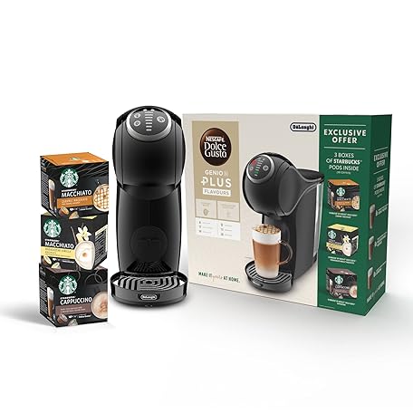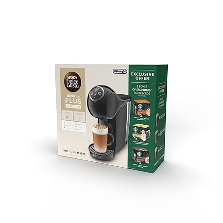 Thương hiệu NESCAFÉ DOLCE GUSTO là cái tên nổi tiếng được rất nhiều khách hàng trên thế giới chọn lựa. Với kiểu dáng đẹp mắt, sang trọng, sản phẩm De'Longhi Nescafe Dolce Gusto Genio S Plus Automatic Machine, Capsule Coffee Machine, Espresso Boost, Cappuccino, Energy Saving, Including 3 boxes Coffee Pods Starbucks, Black là sự lựa chọn hoàn hảo nếu bạn đang tìm mua một món cho riêng mình.