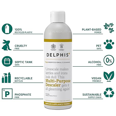 Delphis EcoMulti Purpose Descaler - Plant-based, Vegan Descaler, Free from Hydrochloric Acid, Enzymes, Formaldehyde, VOCs and APEs, 350 ml