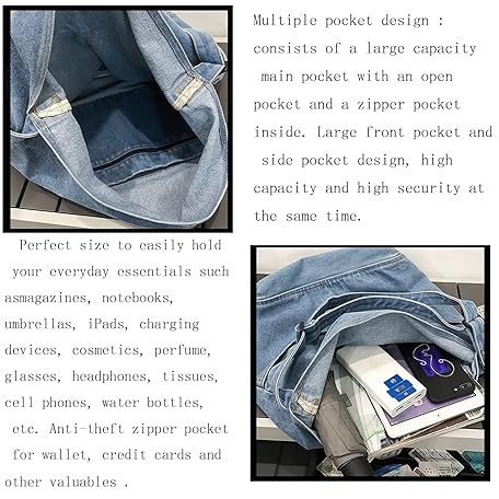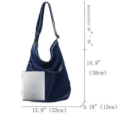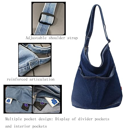 Thông tin sản phẩm Denim Shoulder Bag for Women Jean Bag Hobo Tote Bag Casual Denim Bag Retro Crossbody Bag Large Crossbody Tote Bag, Color2, One Size