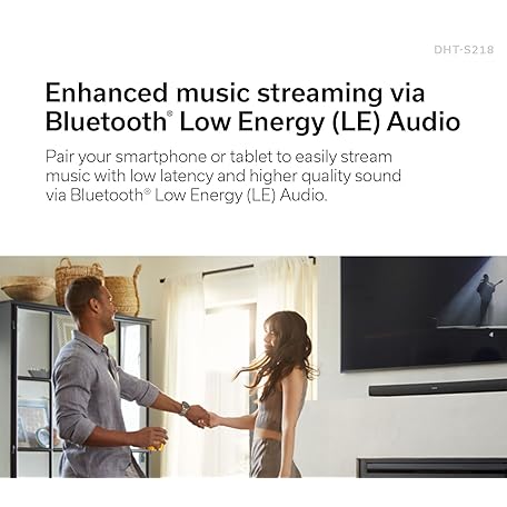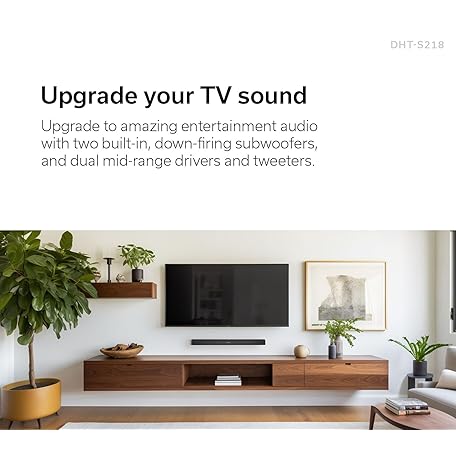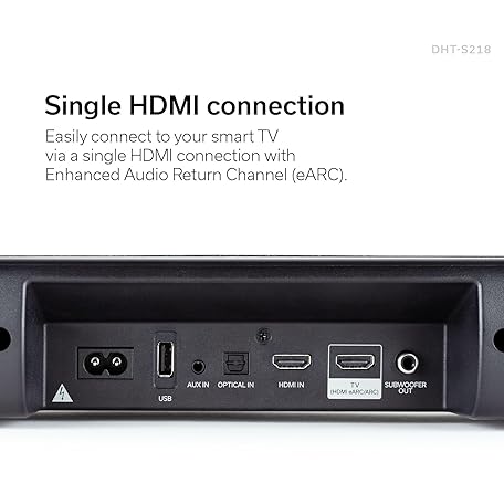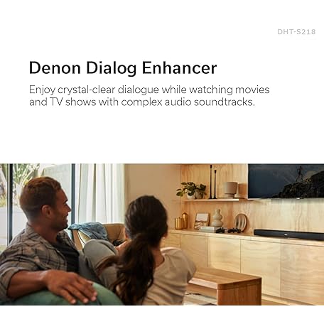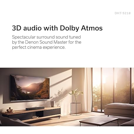 Thông tin sản phẩm Denon DHT-S218 Sound Bar (Black), 2.1-Channel, 3D Audio with Dolby Atmos, 2 Built-in Subwoofers, Dual Midrange Drivers & Tweeters, 4K UHD HDMI with eARC, Dialog Enhancer, Multi-Pairing & Multi-Point