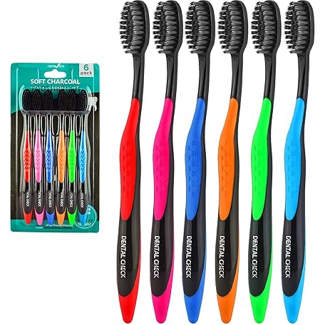 Dental Check 6 Pack Charcoal Toothbrush | Natural Teeth Whitening Solution | Ultra-Soft Bristles for Dental Care | Angled Bristles for Hard-To-Reach Areas | Clean Away 99% Of Plaque & Brighten a Smile