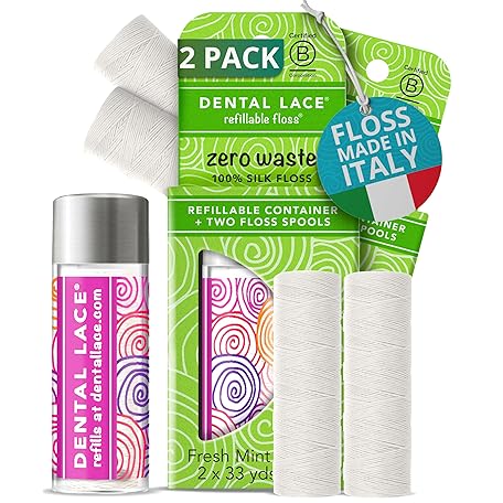 Thương hiệu Dental Lace là cái tên nổi tiếng được rất nhiều khách hàng trên thế giới chọn lựa. Với kiểu dáng đẹp mắt, sang trọng, sản phẩm Dental Lace Refillable Silk Dental Floss – 100% Silk Floss with Mint Flavor, PFAS & PTFE Free – 1 Refillable Pink Glass Floss Container and 2 Spools (66 Yards) - Recyclable Packaging (Pack of 2) là sự lựa chọn hoàn hảo nếu bạn đang tìm mua một món cho riêng mình.