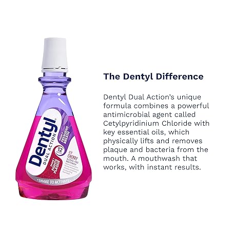 Thông tin sản phẩm Dentyl Dual Action CPC Mouthwash, 12hrs Fresh Breath & Total Care, Alcohol Free, ICY Cherry, 500 ml (Pack of 2)