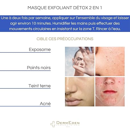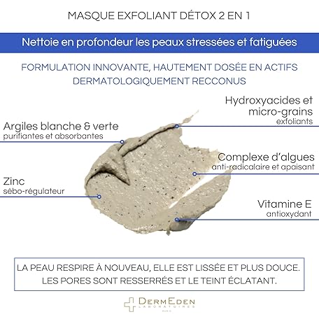 Sản phẩm DermEden - Detox Exfoliating Mask 50 ml - 2 actions in 1 - Removes all impurities and pollution particles - Purifies, tightens and unclogs pores - Made in France đang được bán với giá ưu đãi là $36.7112 tại nước Anh.