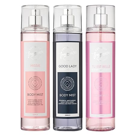 Designer Fragrances 3 Pack Assorted Bundle - Tu Est Belle - Good Lady - Missie - Women's Feminine Body Mist Sprays - For Silky Soft, Beautifully Smelling Divine & Fresh Skin, Great Gifts - 250ml