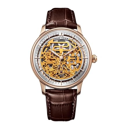 Designer Mens Yellow Gold Blue Skeleton Leather Steel Watches RGA1975 …