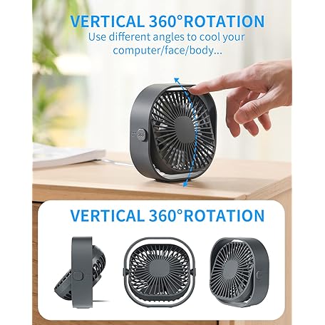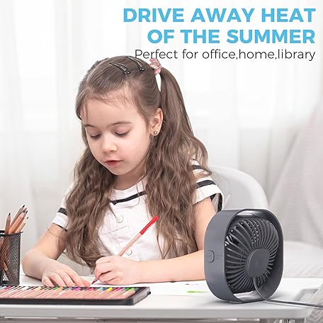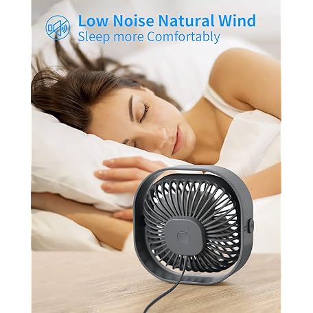 Thông tin sản phẩm Desk Fan USB Small Fans for Desktop Table Bedside, Mini Quiet Home Office Accessories for Bedroom Car Greenhouse Kitchen, Powerful Silent Bed Fan with Cable, 3 Speeds Wind Strong Airflow Plug in
