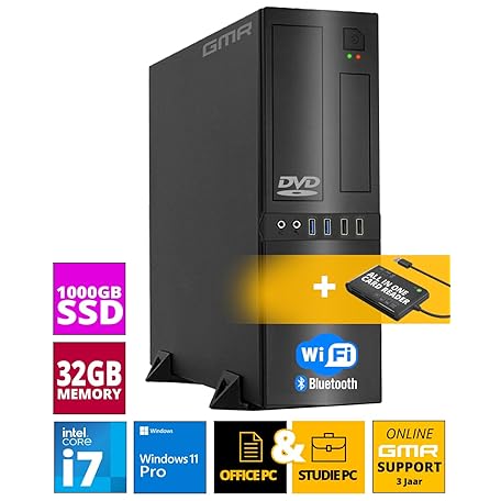Thương hiệu GMR là cái tên nổi tiếng được rất nhiều khách hàng trên thế giới chọn lựa. Với kiểu dáng đẹp mắt, sang trọng, sản phẩm Desktop PC with Intel i7 8-Thread 4.00 GHz | 32GB DDR3 | 1000GB SSD | DVD±RW | Smart ID Card Reader 5-in-1 | USB3 | WiFi 600 and Bluetooth 5 | Windows 11 Professional 64-Bit | Multimedia Computer là sự lựa chọn hoàn hảo nếu bạn đang tìm mua một món cho riêng mình.