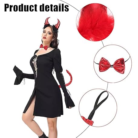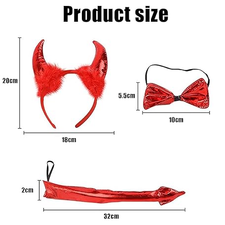 Thông tin sản phẩm Devil Costume, Devil Horns, Devil Horns Headband, Devil Horns Headband, Devil Horns and Fork Devil Costume Set, Devil Horns Ears Headband Tail Set Halloween Costume Party Headwear