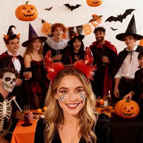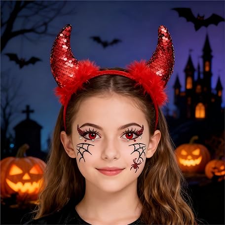 Sản phẩm Devil Horns Headband with Spider Face Stickers, Sparkles Halloween Hairband for Women Men Adults, Fancy Dress Party Accessory Kit đang được bán với giá ưu đãi là $8.7527 tại nước Anh.