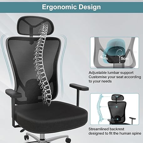 Sản phẩm Devoko Ergonomic Office Chair High Back Computer Desk Chair with Adjustable Lumbar Support, Headrest & 3D Armrest Breathable 130° Rocking Max Load 180kg(Black) đang được bán với giá ưu đãi là $117.1859 tại nước Anh.