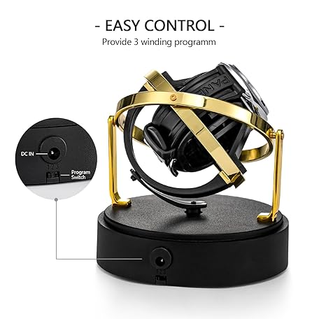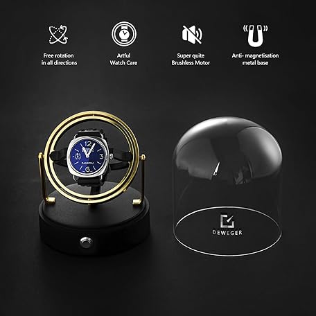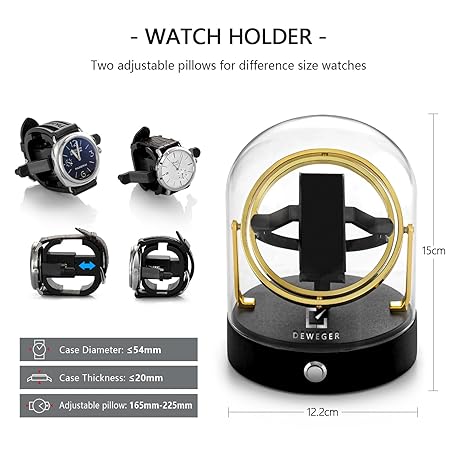 Thông tin sản phẩm DEWEGER- Orbit Single Watch Winder for Mechanical Watch Quiet Motor Fit Lady Man Suitable for Rolex and Most, Gold, Fashion
