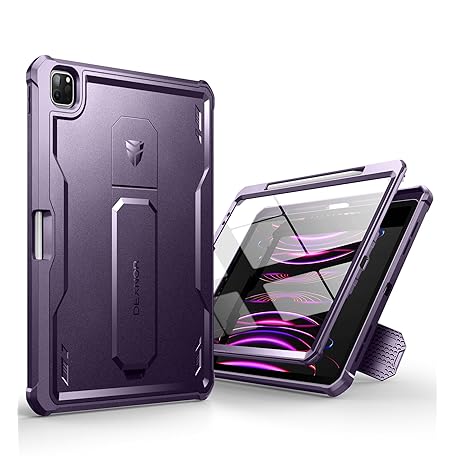 Dexnor Rugged Case for iPad Pro 6/5/4th Generation (2022/2021/2020) 12.9 inch, Heavy Duty Shockproof Full-body Bumper Protective Cover with Screen Protector & Adjustable Stand & Pencil Holder - Purple