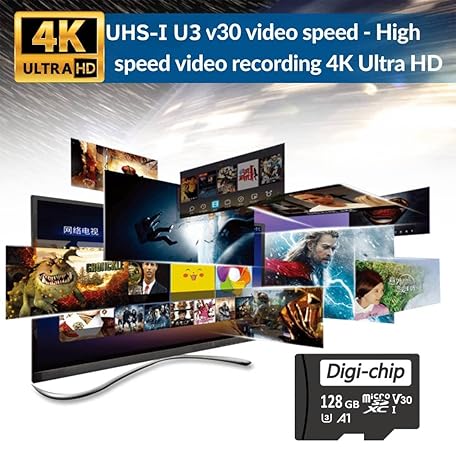 • Digi-Chip 128GB Micro SD Memory Card for Tapo Cameras, Class 10 UHS-1 V30 Video High Speed Tapo Camera Memory Card for Wi Fi Security Cameras