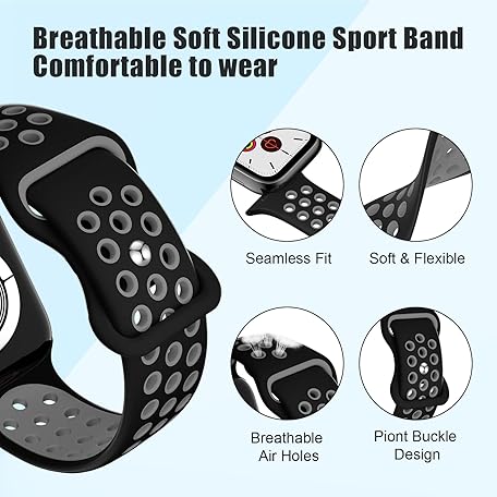 Thông tin sản phẩm DigiHero Sport Straps Compatible with Apple Watch 41mm 40mm 38mm 49mm 46mm 45mm 44mm 42mm for Women Men, Breathable Soft Silicone Replacement Wrist Strap for iWatch Series 10/9/8/7/6/5/4/3/SE/Ultra B