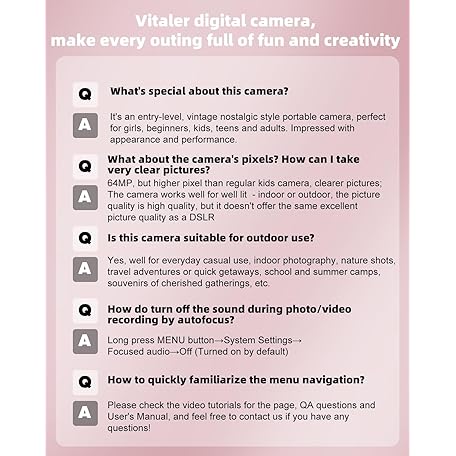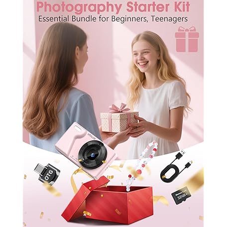 Thông tin sản phẩm Digital Camera 4K 64MP Compact Camera with Dual Lens,2000mAh Battery,2.8" IPS Screen,18X Digital Zoom,32GB Micro SD Card and OTG Adapter Auto-Focus Small Camera for Kids,Teenagers,Beginners,Pink