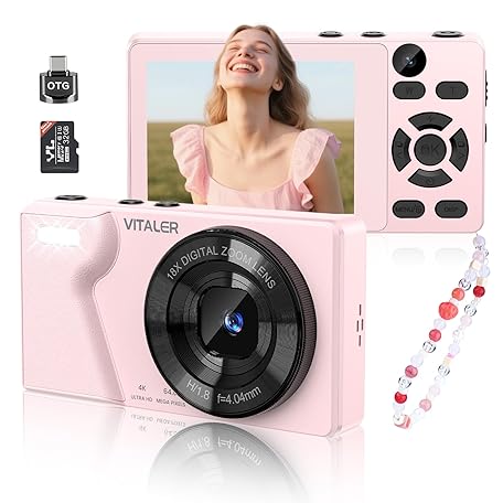 Thương hiệu Vitaler là cái tên nổi tiếng được rất nhiều khách hàng trên thế giới chọn lựa. Với kiểu dáng đẹp mắt, sang trọng, sản phẩm Digital Camera 4K 64MP Compact Camera with Dual Lens,2000mAh Battery,2.8" IPS Screen,18X Digital Zoom,32GB Micro SD Card and OTG Adapter Auto-Focus Small Camera for Kids,Teenagers,Beginners,Pink là sự lựa chọn hoàn hảo nếu bạn đang tìm mua một món cho riêng mình.