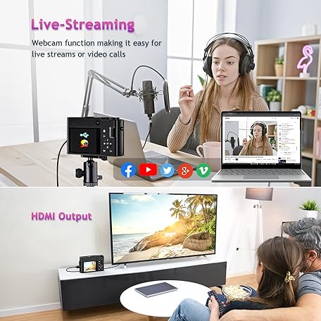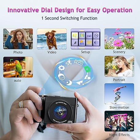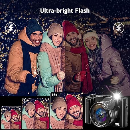 Thông tin sản phẩm Digital Camera, Selfie Cameras for Photography, 4K 64MP Vlogging Cameras for Youtube with Autofocus, Anti-shake Flash Light 16X Digital Zoom 32G Memory Card