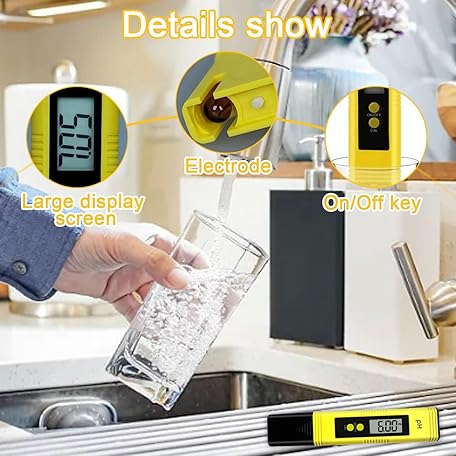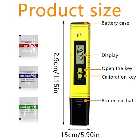 Thông tin sản phẩm Digital pH Meter, 0.00-14.00 Measurement Range Digital Water Quality Tester, 0.01pH High Accuracy pH Pen for Household Drinking Water Swimming Pools Aquariums (Yellow, 1 Pcs)