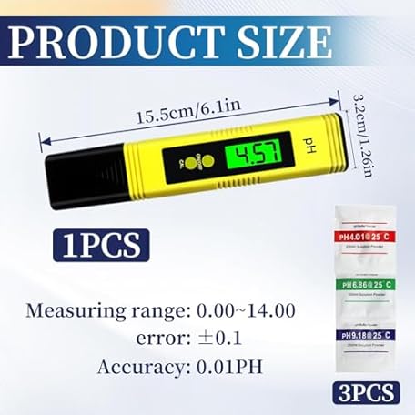 Thông tin sản phẩm Digital PH Meter, PH Tester Digital 0.01pH High Accuracy 0-14 PH Measurement Range Portable Water Quality Testing PH Meter with LCD Display for Household Drinking Water, Pool, Hydroponics, Aquarium