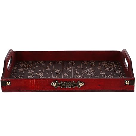 • DINHEAROM Antique Wooden Serving Tray Chinese Style Wood Tea Tray Decorative Food Platter for Fruits Snacks Desserts Candy Display
