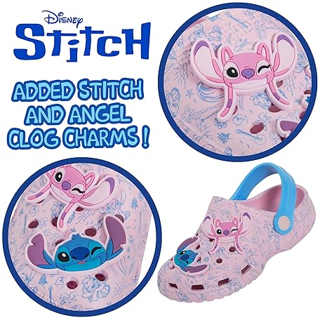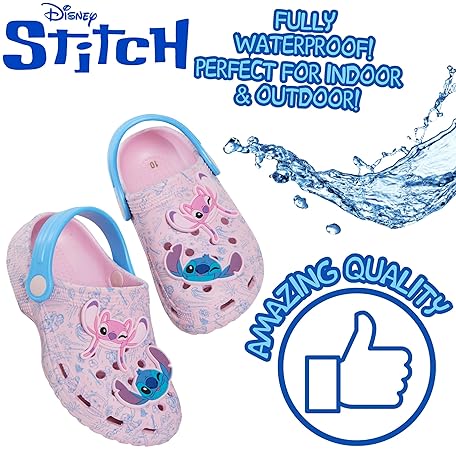 Sản phẩm Disney Girls Stitch and Angel Clogs with Charms Kids Sandals Summer Sliders with Ankle Strap Beach Shoes đang được bán với giá ưu đãi là $25.0918 tại nước Anh.