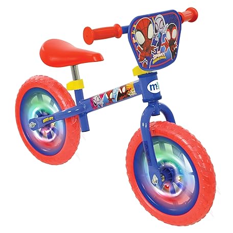 • Disney Spidey & His Amazing Friends 12" Boys and Girls Balance Bike 2+ Years Old with Light Up Wheels - Adjustable 12 Inch Balance Bike - Kids Balance Bike 2+ Years Old - Toddler Balance Bike