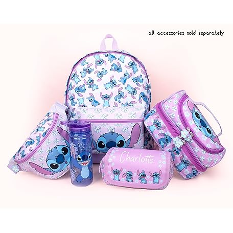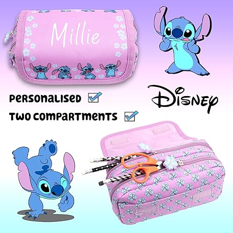 Disney Stitch Personalised Pencil Case, Purple Cute Personalised School Pencil case for Girls, 2 Large Compartments Stationery Pouch (Purple)