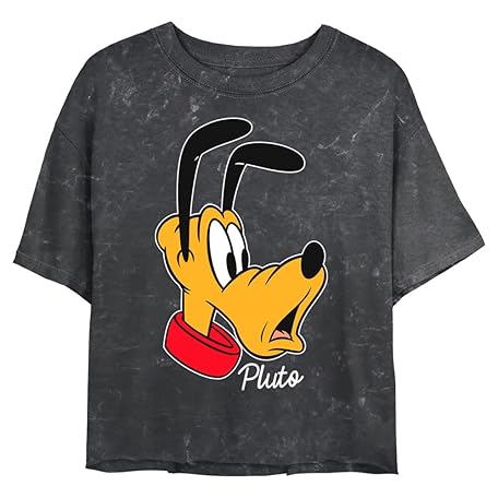 Thông tin sản phẩm Disney Women's Characters Pluto Big Face Mineral Wash Short Sleeve Crop Tee T-Shirt, Black, X-Large