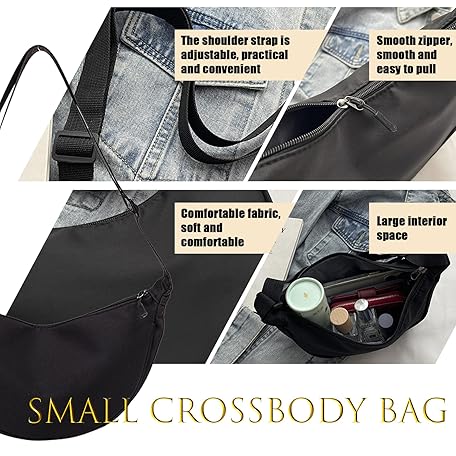 Thông tin sản phẩm DKDDSSS 2 Pack Crescent Bag for Women - Black Crossbody Bag with Half Moon Design, Adjustable Strap, 1 Litre Capacity