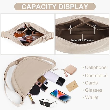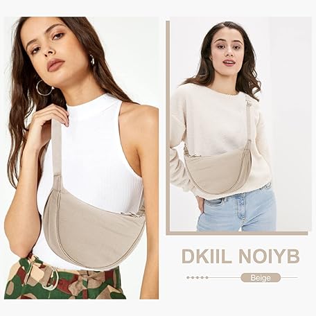 Thông tin sản phẩm DKIIL NOIYB Crescent Bag for Women Men, Nylon Crescent Bags Hobos Crossbody Bag Portable Crescent Purse with Adjustable Strap Solid Color Chest Bag Shoulder Bag Fanny Packs, A02-beige, 31cm