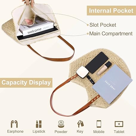 Sản phẩm DKIIL NOIYB Straw Shoulder Bag For Women, Large Straw Bags Weave Handmade Handle Tote Bag Summer Beach Straw Handbags Bohemian Crossbody Bag đang được bán với giá ưu đãi là $27.8386 tại nước Anh.