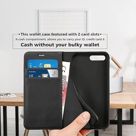 Thông tin sản phẩm DN-Technology iPhone 7 Plus Case, iPhone 8 Plus Case, Flip Folio PU Leather Book Phone Cover, Wallet Stand Feature Magnetic Closure ID Card Holder Slots, For iPhone 7+/8+ Cover (BLACK)