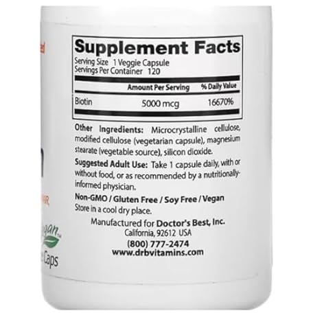 Thương hiệu DoctorsBEST là cái tên nổi tiếng được rất nhiều khách hàng trên thế giới chọn lựa. Với kiểu dáng đẹp mắt, sang trọng, sản phẩm Doctor's Best - Biotin 5000 mcg | Support for Healthy Skin, Hair and Nails - 120 Veggie Capsules là sự lựa chọn hoàn hảo nếu bạn đang tìm mua một món cho riêng mình.