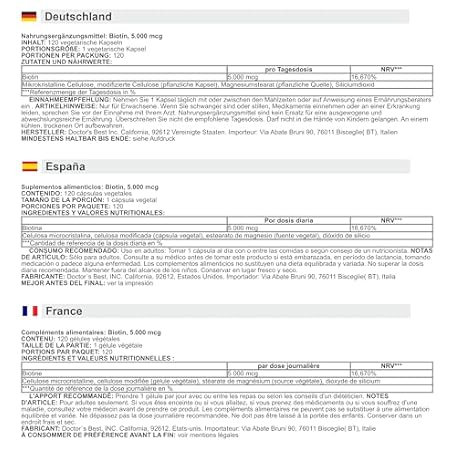 Sản phẩm Doctor's Best - Biotin 5000 mcg | Support for Healthy Skin, Hair and Nails - 120 Veggie Capsules đang được bán với giá ưu đãi là $28.6888 tại nước Anh.
