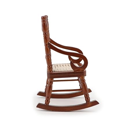 Thông tin sản phẩm Dollhouse Miniature Rocking Chair 1:12 Scale Wooden Furniture Accessories Tiny Mini House Home Outdoor Cake Topper Decoration Model Living Room Scene Christmas Craft Displays (Brown, 2)