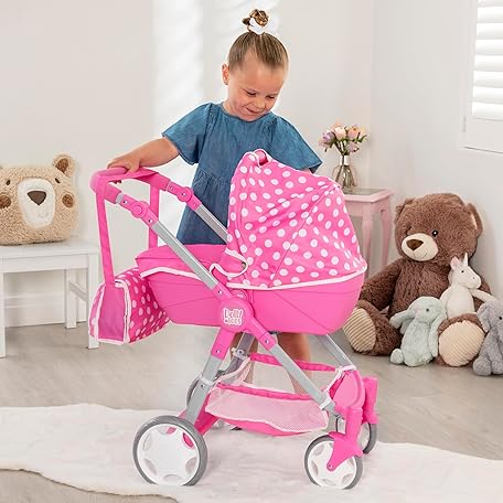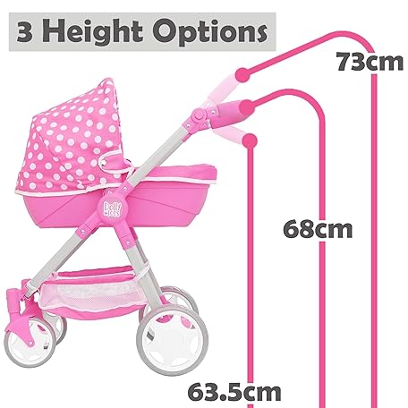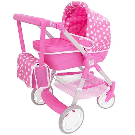 Sản phẩm Dolly Tots Junior Roamer Dolls Pram | Pink Polka Dot Pushchair with Detachable Carry Cot, Adjustable Handle & Storage Basket | Includes Changing Bag | Toy Travel System for Kids Ages 3+ đang được bán với giá ưu đãi là $45.998 tại nước Anh.