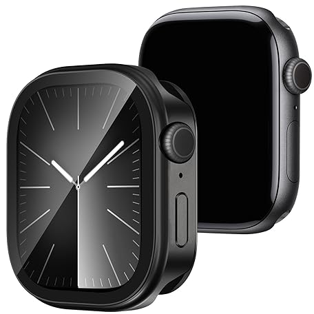 Dolstrap 2 in 1 Metal Case Compatible with Apple Watch Series 9/8/7 45mm with Built-in Screen Protector, 360° Full Protective Shockproof Bumper Case with Back Cover for iWatch 45mm, Black