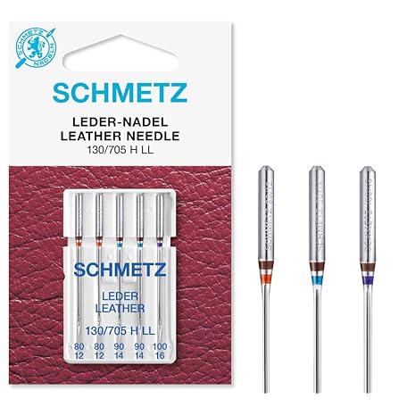 Domestic Sewing Machine Needles | 5 Leather Needles | 130/705 H LL | Needle Size 2x80/12, 2x90/14 and 1x 100/16 | Suitable for Sewing Leather