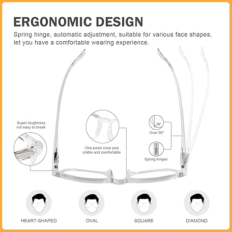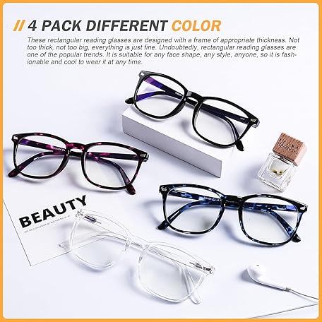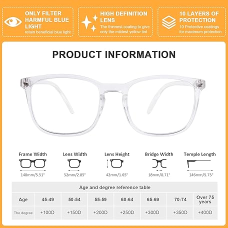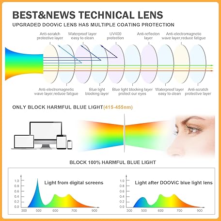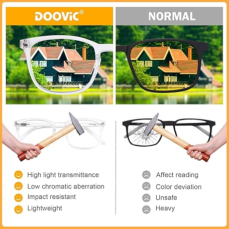 DOOViC Blue Light Filter Reading Glasses for Computer Square Large Frame MX024 (Black/Clear/Blue/Purple)