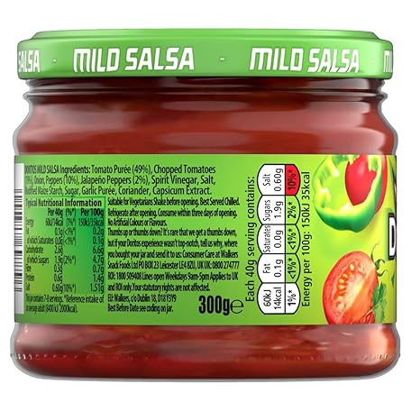 Sản phẩm Doritos Mild Salsa Vegetarian Dip, Ideal for Sharing 300 g đang được bán với giá ưu đãi là $3.3572 tại nước Anh.