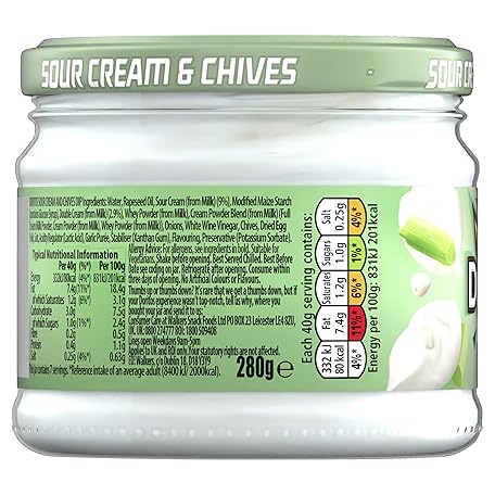 Sản phẩm Doritos Sour Cream and Chive Dip, 280 g đang được bán với giá ưu đãi là $3.3572 tại nước Anh.