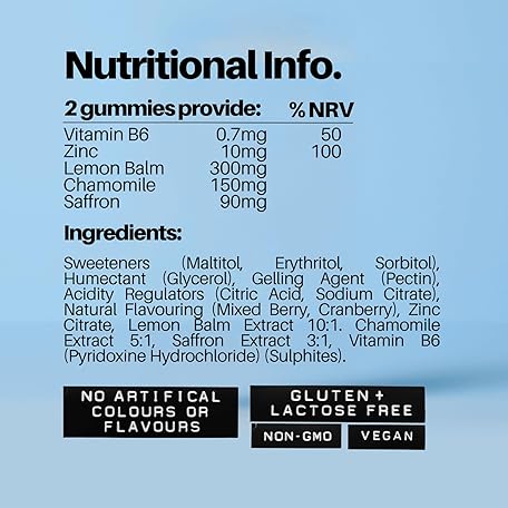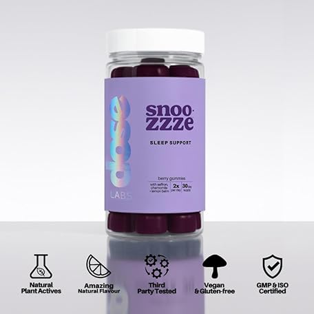 Thông tin sản phẩm Dose Delicious Snooze Sleep Support Gummies (30 x 2 Servings) | Zero Sugar | Vegan Natural Berry Flavoured | Gluten & Lactose Free | with Vitamins B6, Saffron, Chamomile & Lemon Balm | 1 Month Supply