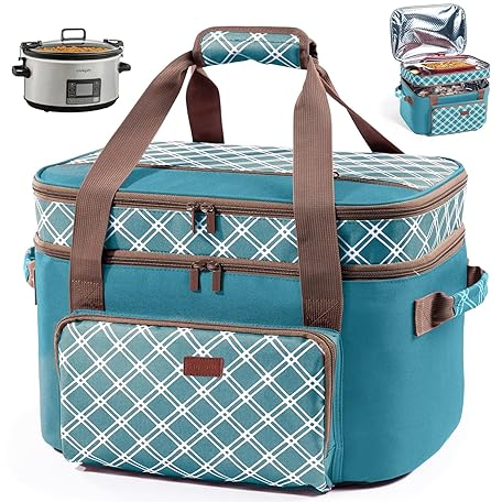 Double Layer Slow Cooker Carrier Bag – Fits 6–8 Qt Oval Slow Cooker Compatible with CrockPot & Hamilton Beach | Insulated Travel Tote with Utensil Storage & Adjustable Straps
