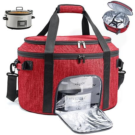 Double-Layer Slow Cooker Carrying Bag for 6-8 Quart CrockPot and Hamlton Beach Slow Cooker, Travel Bag with Lid Fastener for Crock-pot, Portable Carrier Case Slow Cooker Bag with See-thought Window
